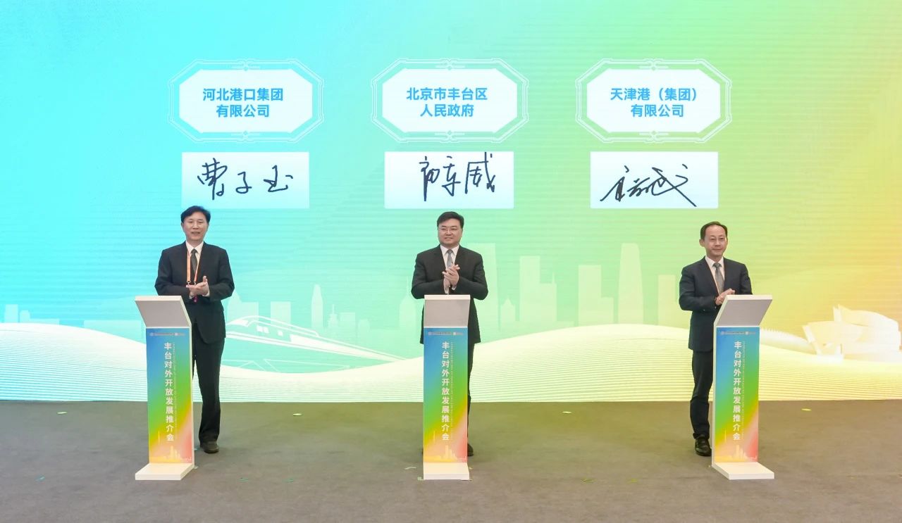 9月15日,2024年中国国际服务贸易交易会期间,由北京市商务局、北京市丰台区人民政府主办,以“开放创新服务 共绘丰采未来”为主题的丰台对外开放发展推介会在国家会议中心举办。会上,黑料网 与北京市丰台区人民政府、河北港口集团签署战略合作框架协议,全面贯彻落实党的二十届三中全会精神,构建跨行政区合作发展新机制,推动京津冀协同发展和津冀港口高质量发展。