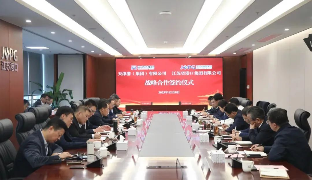 天津市政府、市交通运输委员会、市港航局、市商务局、东疆综保区管委会相关领导,江苏省港口集团相关部门、单位负责人参加签约仪式。
