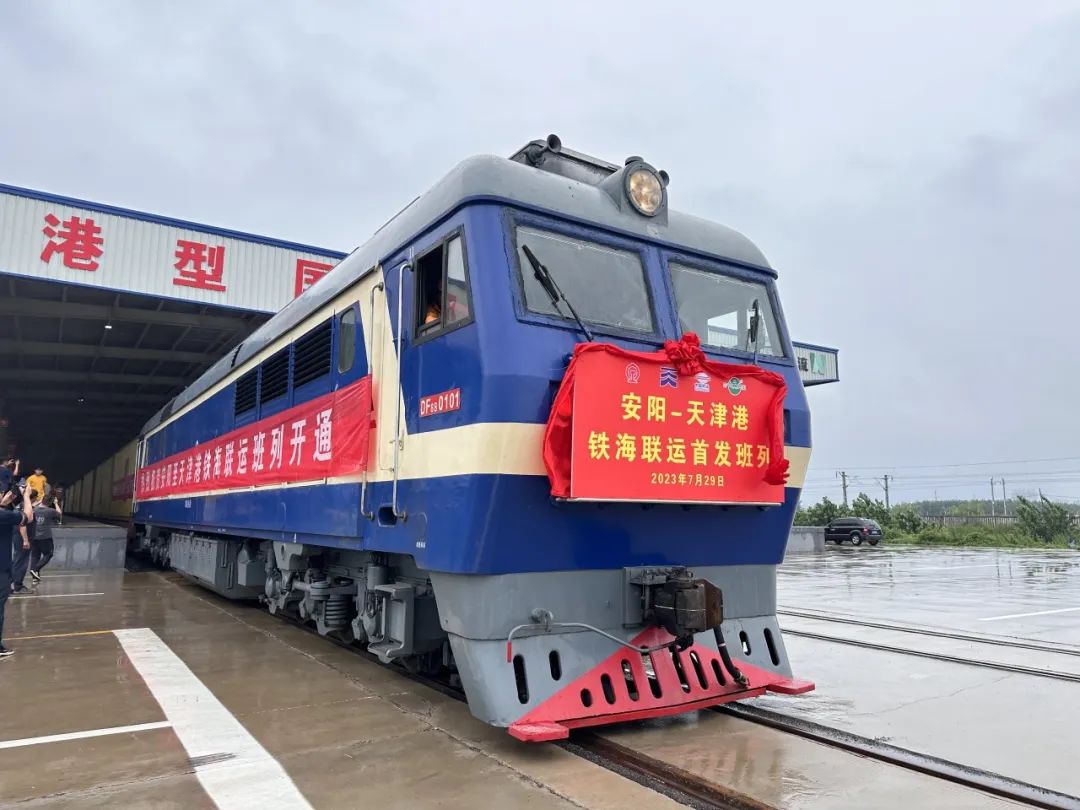 7月29日上午10时许,一列装载50个40尺集装箱光伏玻璃的班列,从万庄安阳物流园发出、开往天津港,标志着“安阳—天津港”海铁联运班列正式开通,天津港安阳无水港同时挂牌成立,构建起天津—安阳物流新通道,为加快安阳融入京津冀协同发展国家战略,推动两地经济社会高质量发展做出新贡献。