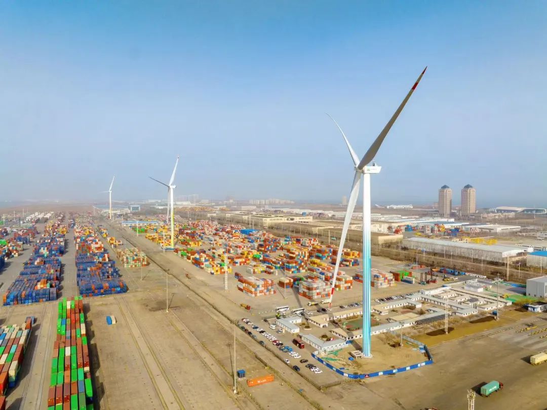 另一方面,集团公司高标准谋划实施推进港口绿色新能源布局,以落实国家“双碳”战略为主线,以“零碳码头”“零碳港区”“零碳港口”三步走为目标,加快推进港口能源结构转型。目前,天津港青鸟太平洋场内15MW分散式风电项目正全力推进工程进度,确保工程按期完工。项目竣工并网发电后,每年可提供清洁电能3555万千瓦时,基本实现天津港太平洋国际集装箱码头100%绿电供应。集团公司也将以此为契机,进一步打造安全、可靠的“源网荷储能源一体化”示范区,稳步推进港区绿色能源系统建设,构建以新能源为主体的港口电力供应系统,努力将天津港打造成为全球碳达峰、碳中和的示范港口。