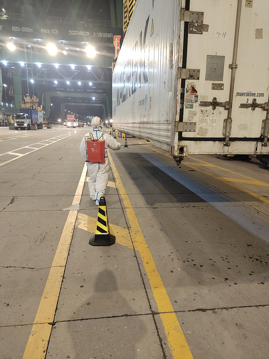 集装箱公司迅速启动应急预案,立即进入战时状态,仅用3小时迅速组织300余名各机种司机、理货、调度、装卸等岗位员工应急补员,投入“堡垒工程”,保证了生产作业持续有序进行。公司统筹做好机械设备日常保养、换季保养,加强安全装置检查;针对特种箱作业、冷箱消杀等基础性管理工作进行重点强化;启动“快速三级响应机制”,对客户诉求启动间隔缩短至5分钟,确保客户诉求反馈及时到位,全力做好客户服务;在1515小程序发布客户公告,让客户实时了解码头正常作业状态,加强与外部堆场、集卡车队的沟通,加强与口岸单位的联系,确保码头生产作业顺利进行。