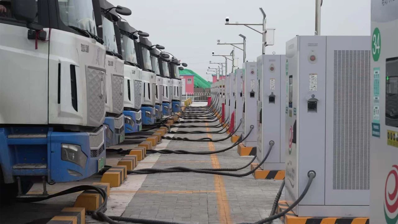 在天津港南疆港区的散货物流配送中心,记者看到,35台300kW的新能源汽车充电桩已经全部投入使用,很多挂着“绿牌照”的重型集卡正在充电。这里也是天津市当前单体规模最大的新能源重卡公共充电站。在天津港区域进行作业的新能源重卡司机选择在这里补电,既能保障车辆的续航能力,还能享受散货物流配送中心为他们提供的一些生活化服务。
