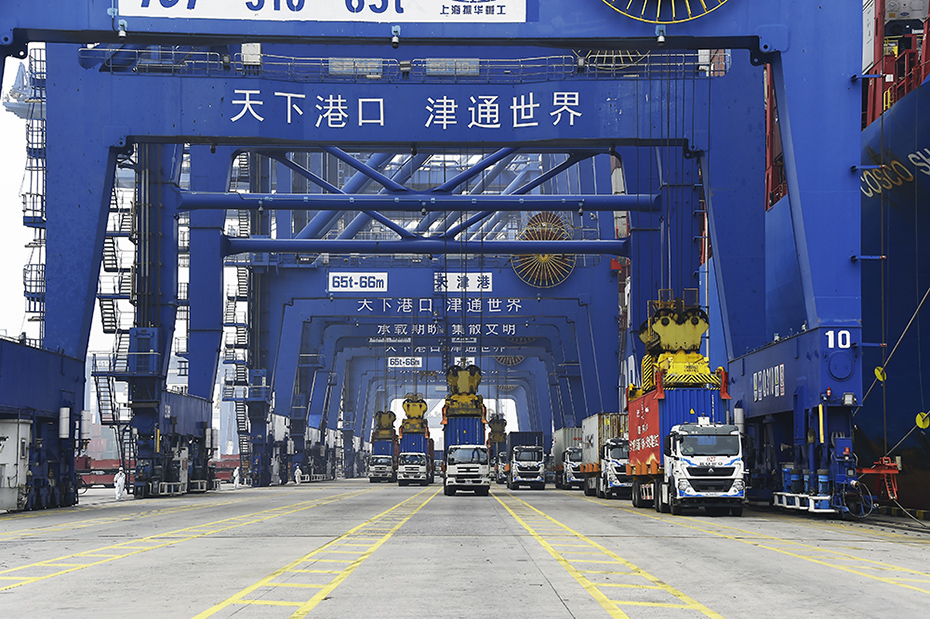 疫情暴发前,天津港与环渤海部分港口之间的运输单量仅为每年20万集装箱。2021年,天津港在环渤海湾港口运输量超过130万箱。3年前,每天进出天津港的大货车约5万多辆,现在降到3万辆左右。2021年7月,天津港与广州港等港口合作,推出海上点对点直航的“海上高速—FAST”模式。两年间,天津港的集装箱吞吐量反倒增加了300万箱。