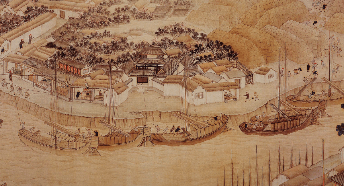 天津港向海而兴的足迹,源于中华民族五千年灿烂文明。据《尚书·禹贡》记载,舜、禹治水成功后,天津地区舟船经黄河入冀州的水运活动已经开始。东汉末年,华北平原开通沟渠, 形成了以海河为主的内河航运网,构成了天津港的雏形。唐代以后,港口逐渐东移,成为天津地区最早的河口港。元、明、清三朝天津港繁华鼎盛,成为五方商贸云集、广连南北、辐射东西的水路联运枢纽。1860年,天津港对外开埠为通商口岸。千年古港,盛衰潮涨。清末以后,几经战火、饱经沧桑,直到1949年1月天津解放,破败不堪、几乎淤死的天津港才回到人民手中。在漫长的历史流变中,天津港从孕育之初,到发展之途,从来都不是一帆风顺的,遇到了无数艰难困苦,但都一路走来,其中很重要的原因就是独具特色、博大精深的中华文化发挥了支撑作用,也形成了天津港精神的源头活水。