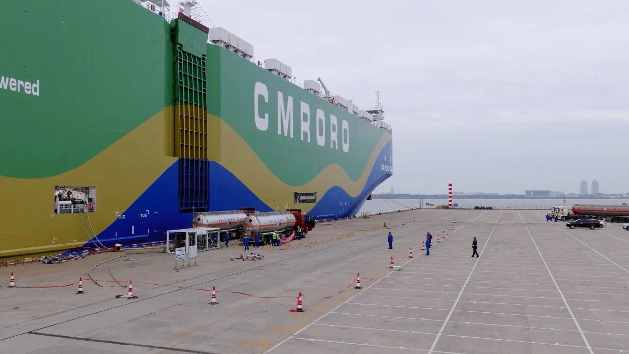 与相关单位紧密协作,成功为全球首艘9300CEU甲醇双燃料动力滚装船“港荣”轮加注300吨绿色甲醇,标志着天津港实现了绿色甲醇生产、运输、储存、加注全链条贯通,进一步拓展了港口功能。
